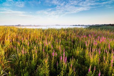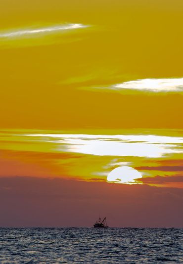 Dramatic Block Island Sound Sunrise with purple skies on the horizon.